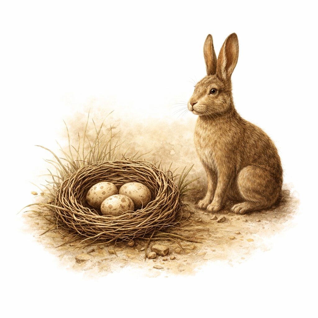 Le lièvre : On raconte souvent qu’Ostara aurait transformé un oiseau aux ailes gelées en lièvre pour le sauver de l’hiver. C’est une image magnifique… et une pure fiction littéraire attribuée à K.A. Oberle en 1883.